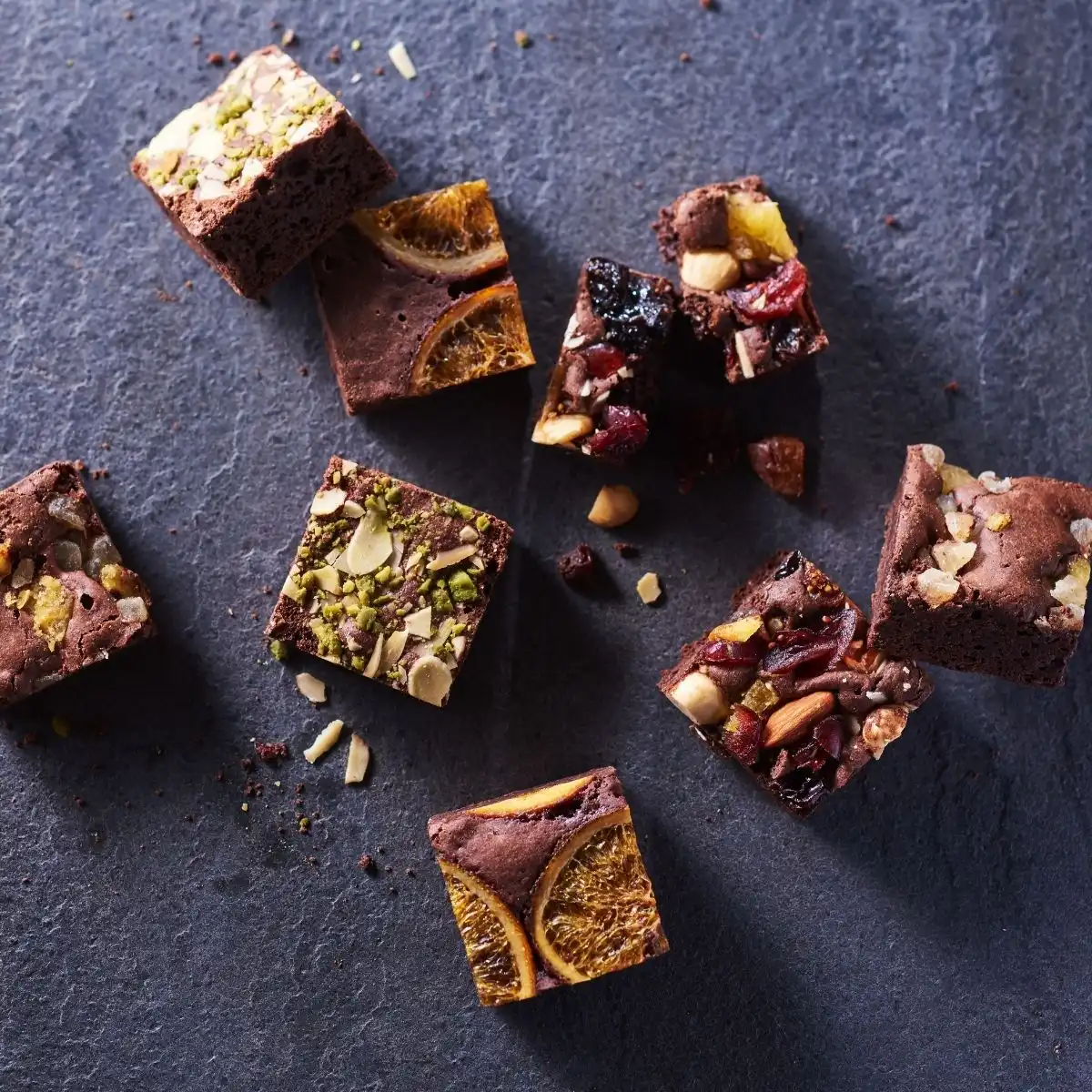 濃厚なチョコレートの生地に、香ばしいナッツや甘酸っぱいフルーツをトッピング。
