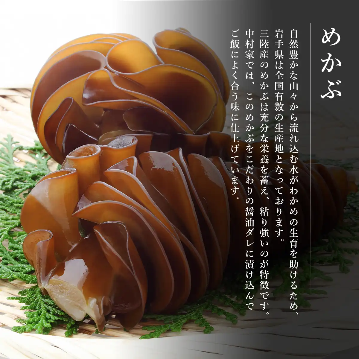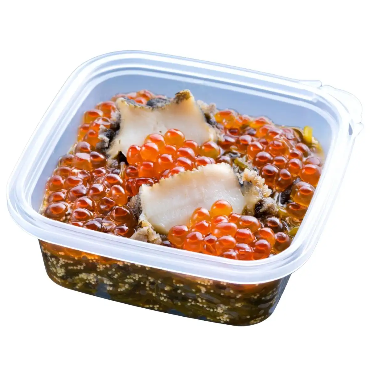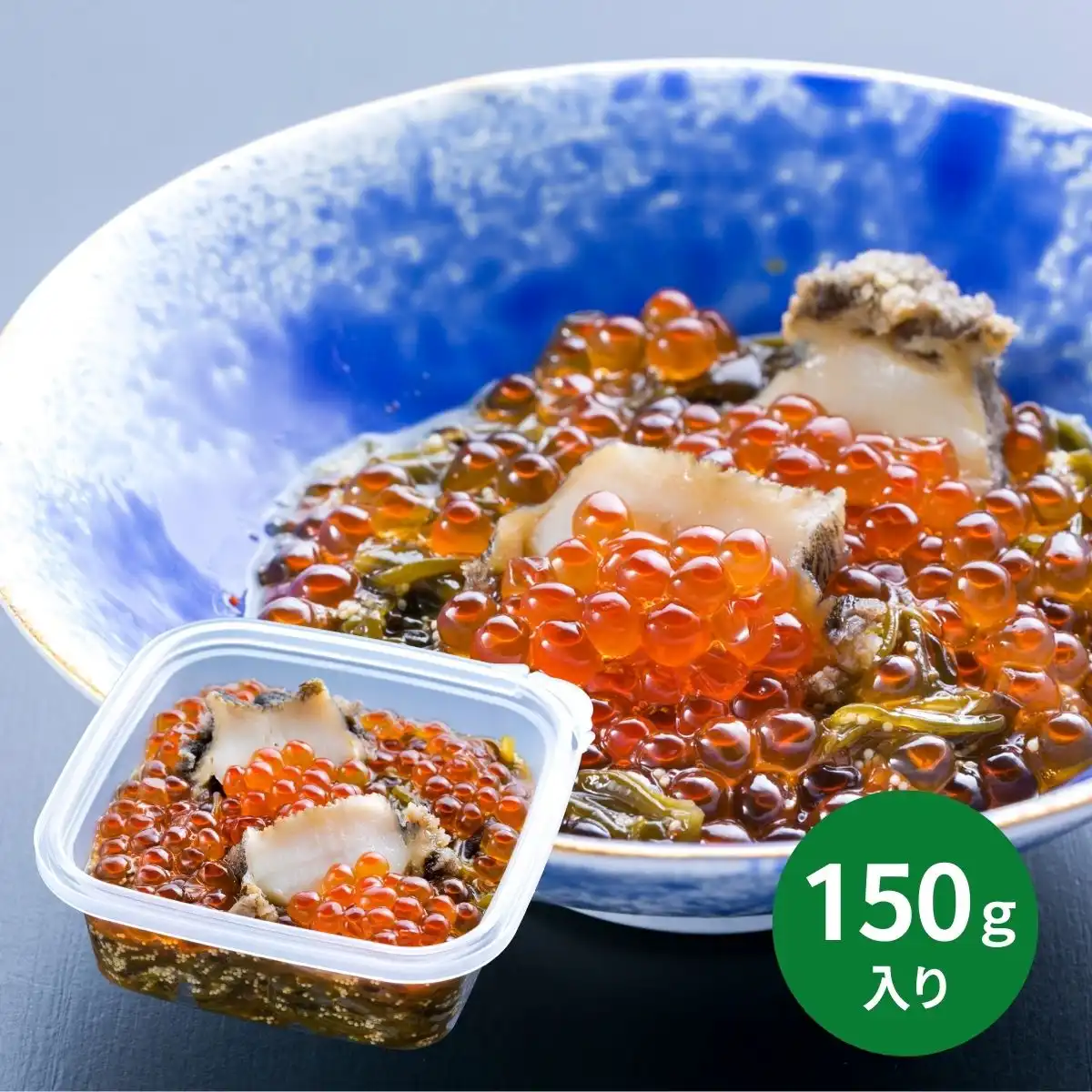 めかぶ醤油漬に、「だまし煮」という技法で柔らかく煮上げたあわびと、濃厚いくらをトッピングした中村家のベストセラー商品。まさに海の宝石箱です。お試しいただくのにもぴったりな150gの食べきりサイズです。