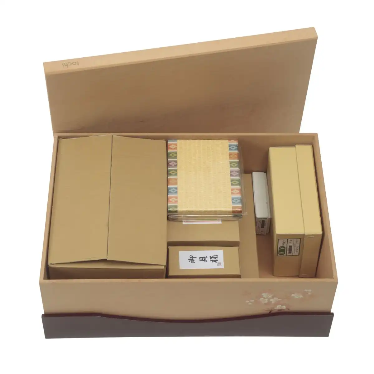 独特な波状紋の木目が特長の栃の木材を用いて仕立てた飾り台は、同じものが一つとない唯一性の高い仕上がりが魅力です。つややかに塗り上げたツートンカラーの屏風や幕板部分に描かれた桜の花は、あたたかな春の訪れを感じさせます。